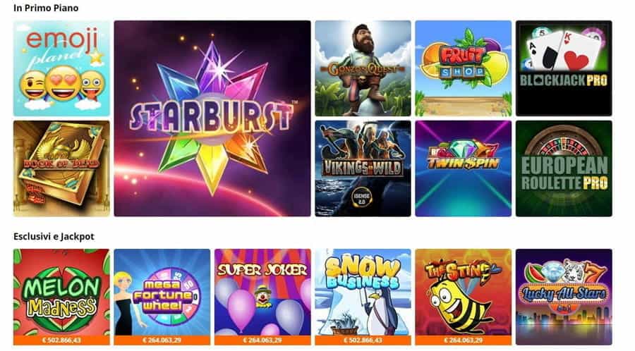 | Restrizioni | Deposito solo con Visa, Mastercard e Postepay |